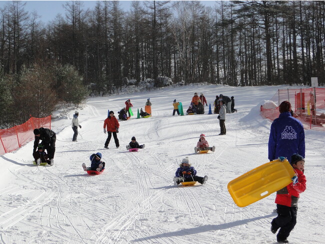 長さ100m・幅30mの広々とした雪遊び広場は、雪山に登ったり、雪だるまを作ったり、気軽に雪あそびを楽しんでいただける無料のゲレンデです。一般ゲレンデから独立しているため、小さなお子さまでも安心して遊んでいただけます。