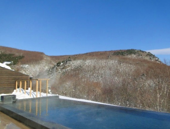 標高約950mに位置する「あだたら山奥岳の湯」は、遮るもののない眺望が自慢の露天風呂で、高村光太郎が『智恵子抄』の中で「ほんとの空」と詠ったことで知られる「ほんとの空」を全身で楽しんでいただくことができます。また、内湯は「源泉かけ流し」で、泉質は全国的にも珍しいph2.5の酸性泉で、筋肉痛や神経痛、疲労回復、また皮膚病への効能や美肌効果もあると言われております。