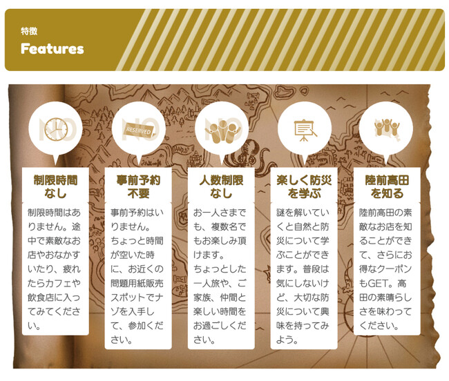 本コンテンツは東日本大震災で大きな被害を受けた岩手県陸前高田市において、謎解きを活用して防災を楽しく学びながら、中心市街地への店舗への回遊を実現し、経済効果を創出する取組となっており、1/14(土)当日にはオープニングを記念して、18歳以下の子供に対して100名限定で無料参加を提供します。
