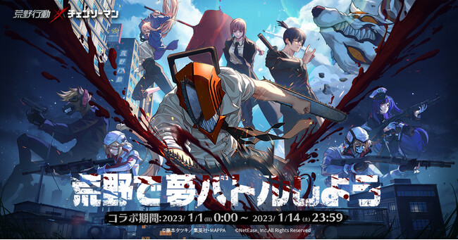 さて、2023年の『荒野行動』は大人気アニメ『チェンソーマン』とのコラボイベントからスタートです。記念すべき初コラボとなる今回は、主要キャラクターであるデンジ、パワー、アキをテーマとしたコラボ限定アイテムを中心にご用意しています。