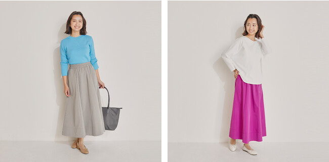 定番のフレアスカートも、防汚撥水機能をもつナノテックス加工でさらに使い勝手の良い1枚へアップデートしました。動きやすく、丈夫なタフタ素材で通年着用できます。