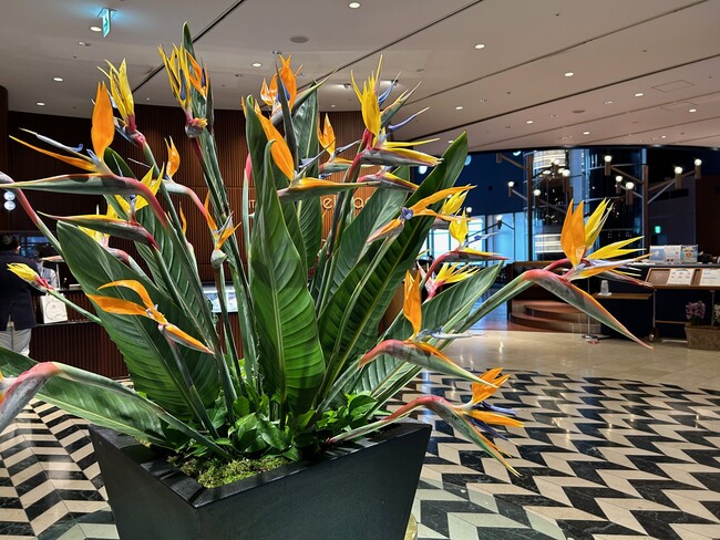 ホテルに飾る花についても滋賀県産の使用を推進し、高品質な地元の花卉(かき)をホテルのお客様にPRするとともに、地域の生産者を応援する企画を行っています。2022年春・秋に実施した滋賀県産のバラに続き、今回は『輝かしい未来』が花言葉のストレリチアの装飾を、1月9日(月・祝)の「成人の日」に合わせ、約1か月間ロビーに展示しております。