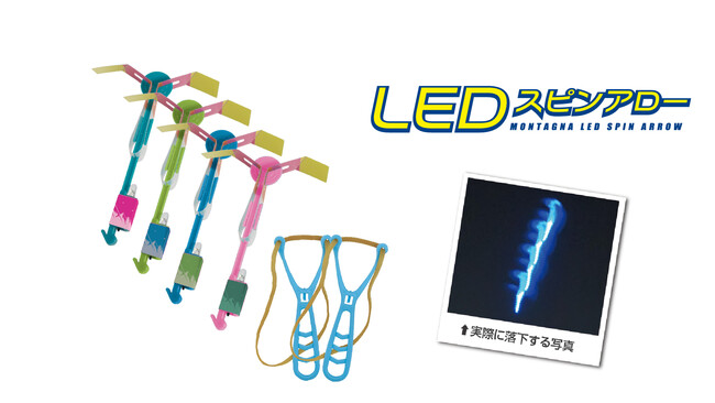 特徴:くるくる飛んで、鮮やかに光るスピンアロー。スイッチを入れればLEDが鮮やかに光ります!夜に飛ばせば幻想的で、まるで流れ星のよう。
