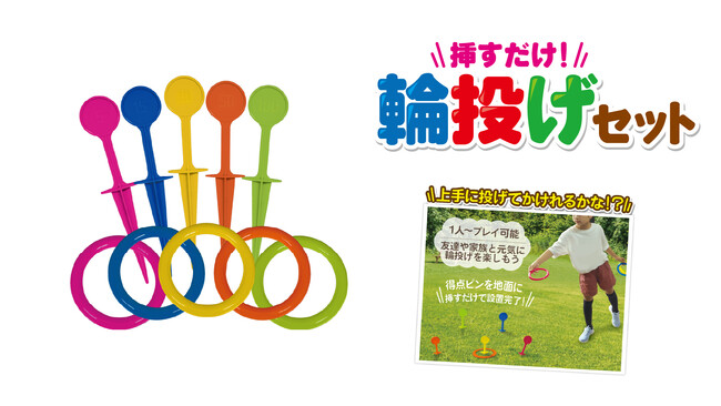 特徴:高得点のピンを狙って上手に輪をかけよう!地面に挿すだけですぐ遊べるから庭やキャンプ場でも大活躍。