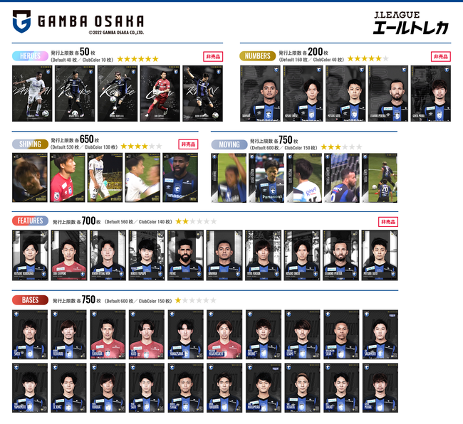 発行上限数 各650枚(Default 520枚/ClubColor 130枚)