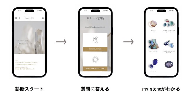 3-4個の簡単な質問に答えることで、その時の自分の心が求めるmy stoneがわかるオンライン診断ツールです。