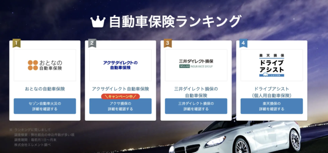 【2023年最新】自動車保険おすすめ人気ランキングTOP4: https://car-h.info/