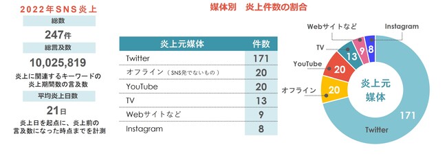 2022年のSNS炎上総数は「247件」、炎上元の媒体1位は「Twitter」