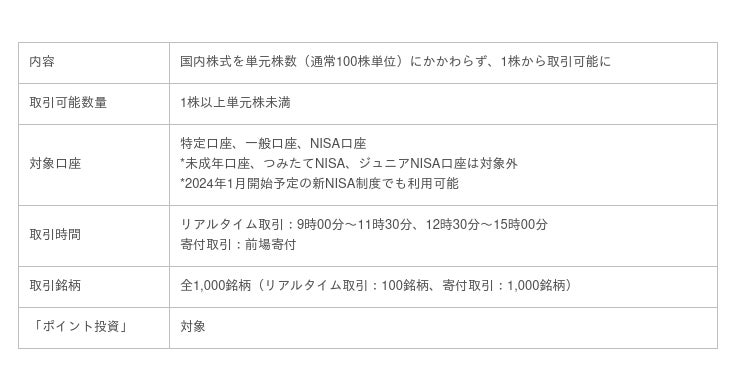 ■主要ネット証券、国内株式単元未満株 サービス比較
