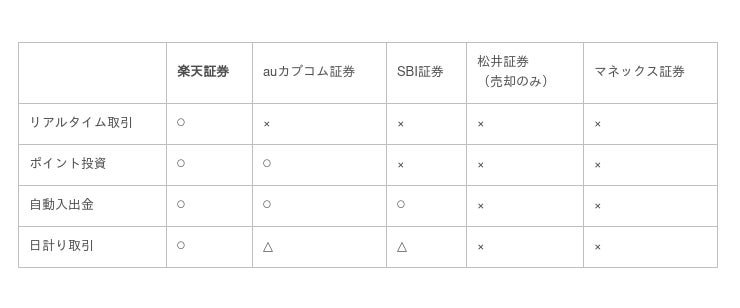 楽天証券(五十音順))、単元未満株提供のスマホ証券(CONNECT、PayPay証券、LINE証券