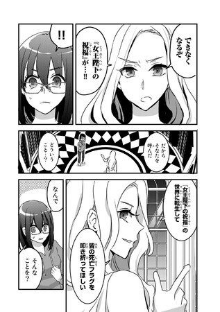 乙女ゲー『女王陛下の祝福』。登場人物が全員死亡するという尖りまくりの設定にハマった主人公は、事故に巻き込まれ死亡してしまう。 気が付くと目の前には神様を名乗る人物が。「ゲームに転生して、皆を救って欲しい」と頼まれた主人公は、戸惑いながらも転生を決意する。 目を覚ますと自分はゲームの脇役キャラ、ルージュになっていて…死亡フラグを折り、ハッピーエンドを目指す異世界ファンタジー!!