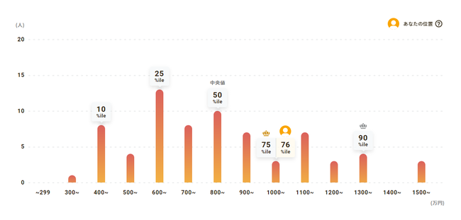 ※「あなたの位置」は登録者の年収位置で、今回の登録者の年収は1000万円に設定。