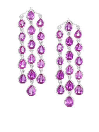 プレゼンターを務めたエミリー・ブラントは、18Kホワイトゴールドに、76.17カラットのペアシェイプピンクサファイアと5.89カラットのダイヤモンドをセットした「ハイジュエリー コレクション」のイヤリングと、ダイヤモンドリングを身に纏い登場。