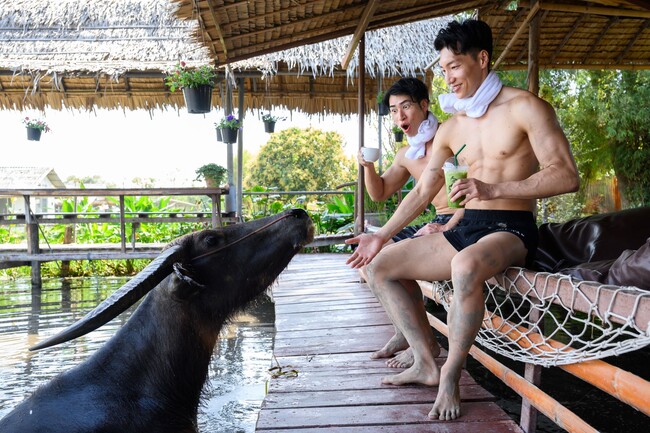 そこにある「バッファローヴィレッジ」にて「水牛とマッチョ」をテーマに撮影しました。