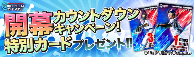 「中日ドラゴンズカードマスター」2023シーズン切替日からプロ野球開幕の3/31(金)までの間、ログインすることで毎日「開幕カウントダウンカード」をプレゼント!各日でデザインが異なるカードに乞うご期待!