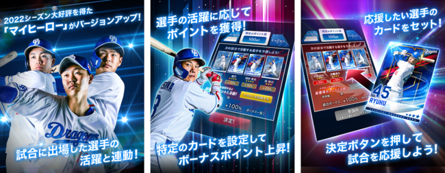 2022シーズンも大好評だった試合結果と連動する「マイヒーロー」が今シーズンも始動!なんと今シーズンは投手の選手カードもセットできるようになります!