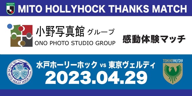 このたび4月29日(日)開催の2023明治安田生命J2リーグ第12節 東京ヴェルディ戦を、株式会社小野写真館様にご支援いただき『小野写真館 感動体験マッチ』として開催することとなりましたので、下記の通りお知らせいたします。