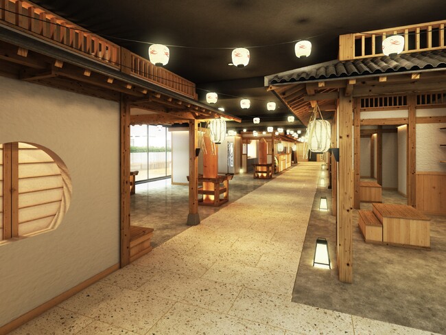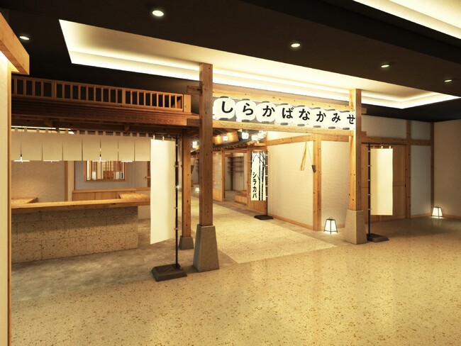 大浴場と同じく3階フロアに新設された、信州の魅力を凝縮した屋内型温泉街「しらかば仲見世」。
