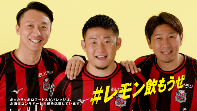 ポッカレモン100をユーザーの皆様にさまざまなシーンで取り入れてもらえるよう、日々、激しいトレーニングを重ねる北海道コンサドーレ札幌の選手たちから使い方を提案。