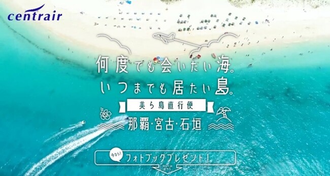 中部国際空港株式会社(所在地:愛知県常滑市)は、沖縄路線(那覇、宮古島、石垣島)への直行便の搭乗促進を目的に、「美(ちゅ)ら島(しま)直行便」キャンペーンを開始します。キャンペーン期間中、セントレアから美ら島(那覇、宮古島、石垣島)への直行便を利用する1組2名以上のグループに対し、フォトブックをプレゼントします。