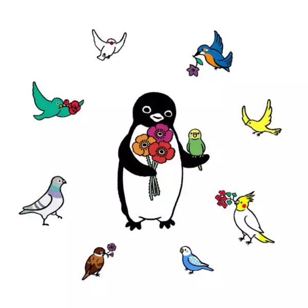 JR東日本の人気キャラクター『Suicaのペンギン』やダイハツのCM「カクカクシカジカ」など、人気キャラクターの生みの親である坂崎 千春氏が描く可愛いペンギンたちが、鳥やねこなどのいきものたちと戯れる情景を描いた版画やグッズを一堂に展示販売いたします。