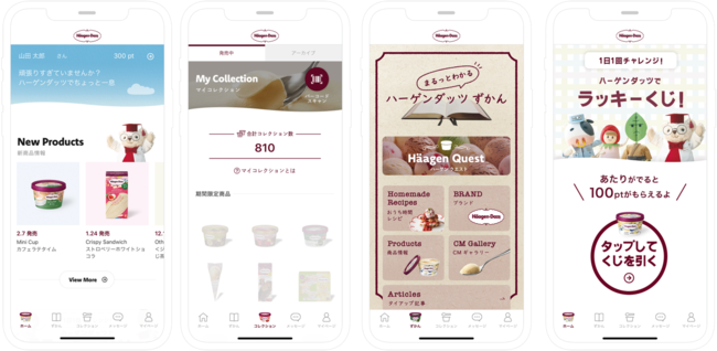 「ハーゲンダッツ公式アプリ」は、2019年6月よりサービスの提供を開始しております。これまで、お客様にハーゲンダッツのさまざまな魅力をお届けするために、プレゼントキャンペーン企画やオリジナルレシピ情報、お客様ご自身が召し上がったハーゲンダッツフレーバーの種類をコレクションできる機能など、アプリ限定のお楽しみコンテンツを提供してまいりました。