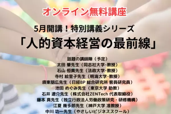 5月からZOOMでのLive講義(質疑応答あり)・YouTube動画・ブログ記事の3媒体が連動して、注目の人事研究者・実践者が講師を務める、やさしいビジネススクール特別シリーズ講義「人的資本経営の最前線」を開講します。