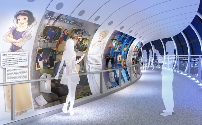約110メートル続く回廊エリアでは、数々の名作の名シーンと共に、100年間愛されてきた物語を振り返ることができます。