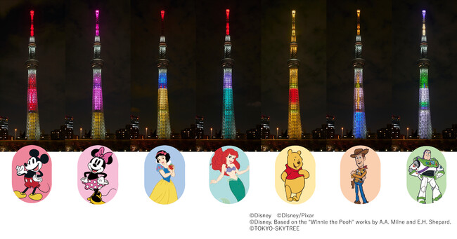 ディズニーとピクサーのキャラクターたちをイメージした特別ライティングを点灯します。