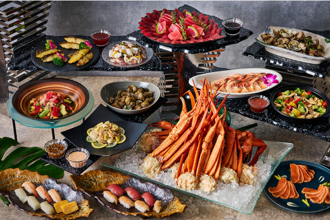 この度ゴールデンウィーク期間に合わせ、豊富な海の幸を楽しめる「シーフードステーション」が登場。お寿司をはじめ、お刺身や焼き物など、素材の味を楽しみつつさまざまな調味料とともに自分好みにアレンジできるメニューをご用意いたします。またオープン当初から大変ご好評いただいていた茹で蟹もディナータイム限定で復活いたします。