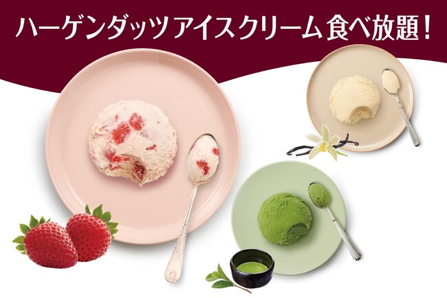 さらにデザートではハーゲンダッツアイスクリームのストロベリー、バニラ、グリーンティーの3種類を食べ放題でご提供いたします。