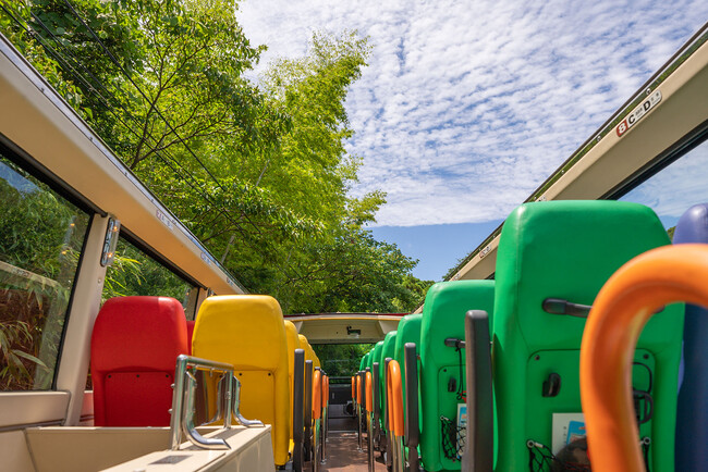 オープントップバス(屋根のない2階建てバス)で風を感じながら、自然豊かな出雲の景色や夕陽を望む特別なひととき。約3.7mの高さから眺めるあなただけに、非日常の景色が飛び込んできます。