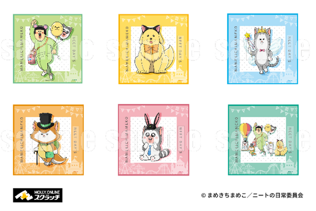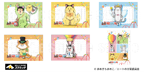 『まめきちまめこニートの日常 モーリーオンラインスクラッチ』は1回748円(税込)で、『まめきちまめこニートの日常』に登場するキャラクターのまめきちまめこ、こまち、タビ、シンバ、メロのテーマパークをイメージしたイラストを使用した限定グッズが当たるオンラインスクラッチのサービスです。 参加方法:モーリーオンラインスクラッチでオンラインスクラッチを購入して、画面上でスクラッチを削って出た等賞が当たります。商品は後日お客さまの自宅へ配送します(別途送料がかかります)。 今回の『まめきちまめこニートの日常 モーリーオンラインスクラッチ』では、全6等賞25アイテムのオリジナルアイテムが当たります。 また、10連セットをご購入のお客さまにはもれなくポストカード(全6種)を1枚プレゼント!
