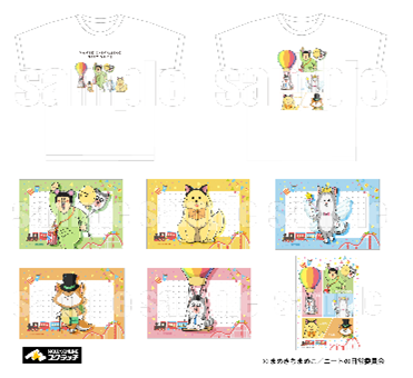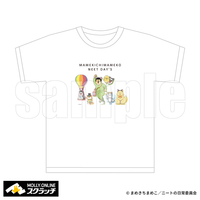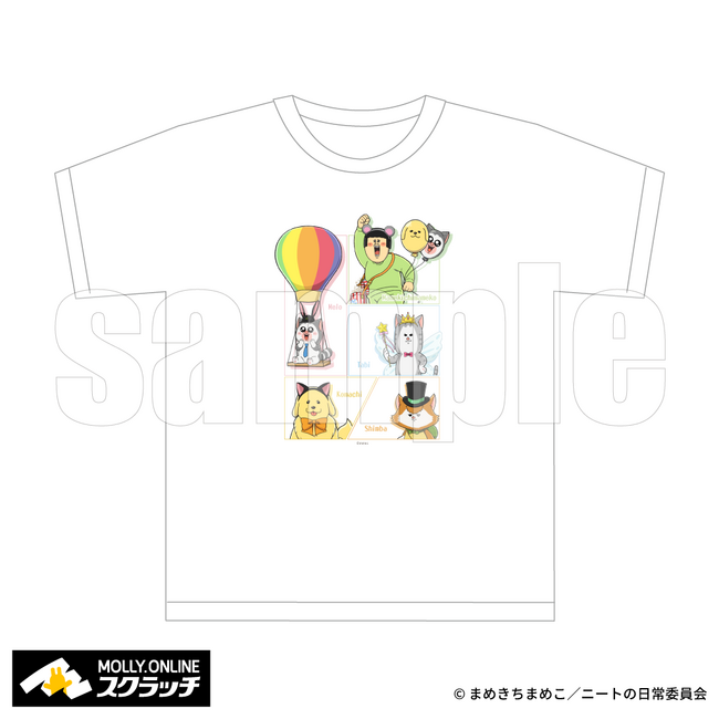 まめきちまめこ、こまち、タビ、シンバ、メロのイラストを使用したTシャツ。