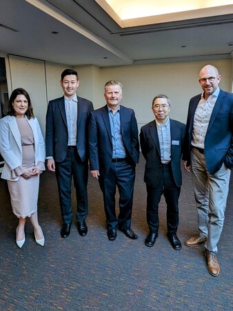 左からOlympia Dolla氏(Vice President)、SuMPO岩下・Hakon Hauan氏 (President)・SuMPO神崎・Christian Donath氏 (Managing Director)