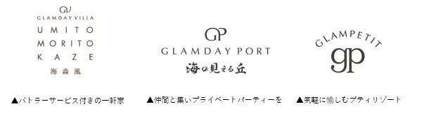 GLAMDAYシリーズは、2017年に「GLAMDAY VILLA 海森風」(所在地:静岡県熱海市)が誕生、続いて沖縄地区に「GLAMDAY VILLA OKINAWA 中村邸」を開業するなど、GLAMOROUS‟魅力的”な1日を過ごすリゾートとして多くのお客様にお喜びいただいております。