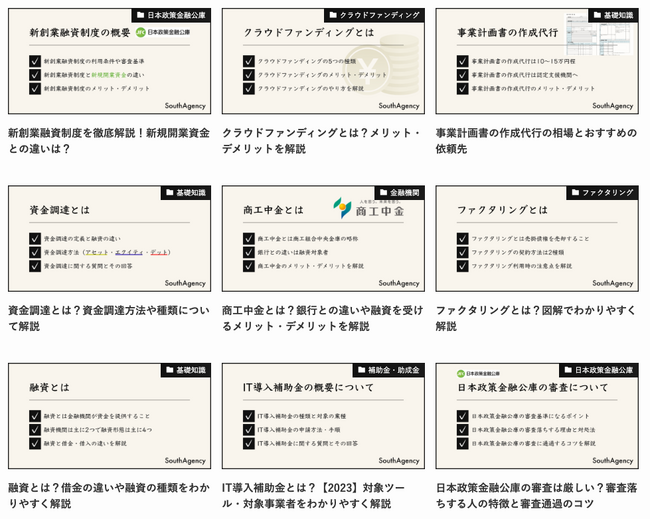 また、弊社ウェブサイトにて、資金調達コラム( https://www.southagency.co.jp/funding/ )を公開しております。これらのコラムは専門性・権威性・信頼性の高い情報源としてご活用いただけます。