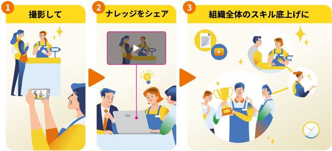 企業から推奨されたプログラムを受講するだけでなく、従業員自らコンテンツを作成することも可能です。インプットだけでなく、アウトプットによる自己成長の機会を提供します。また、企画書や商談、接客など、各従業員が持つナレッジを共有することで、属人化しがちな様々なスキルを組織全体に向けて見える化することができます。