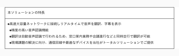 今後は、現在計画している4つのソリューション(別紙参照)を提供するとともに、多言語化を進めるなど、新たな“ワクワク”をお届けできる翻訳ソリューションの開発に取り組んでまいります。