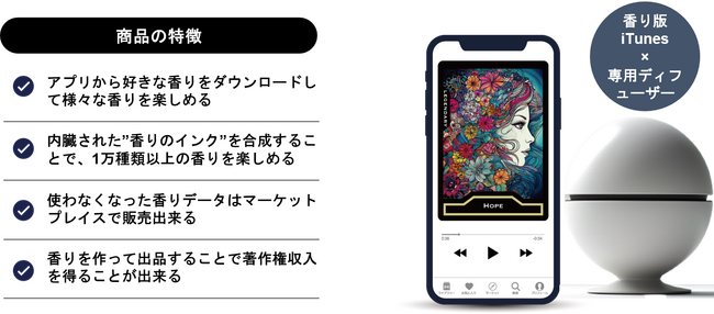香りは、アロマディフューザー、ハンドクリーム、香水、洗剤、シャンプーなど、多くの商品で利用されてきました。しかし、これまでの香りの楽しみ方は商品を直接購入するというアナログな方法に限られていました。そのため、香りの産業は、デジタル変革が遅れている産業の一つとも言えます。