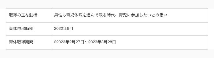 一方で、育休取得前の引継ぎの大切さと育休明けの働き方をどうするか、といった課題等も見えてきました。