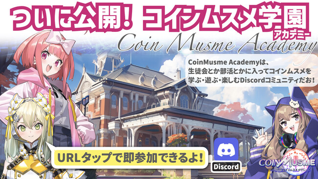 ぜひこの機会に、公式Discordコミュニティ「コインムスメ学園(Coin Musme Academy)」にご参加ください。