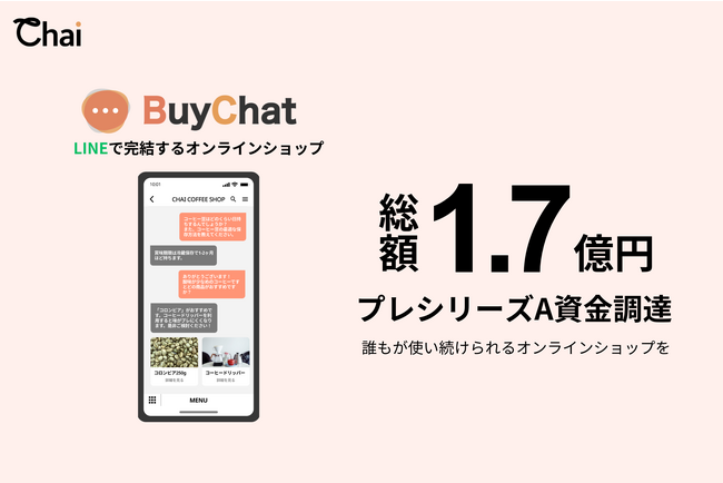 LINEで完結するオンラインショップ「BuyChat」を提供する株式会社Chai(東京都渋谷区、代表取締役社長:西澤理花、以下「Chai」)は、サイドウェイズをリード投資家とした総額1.7億円の第三者割当増資を実施しました。