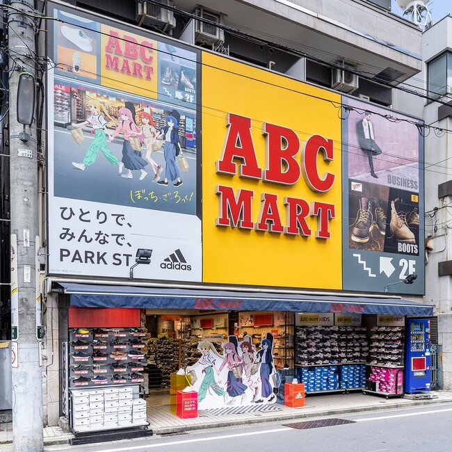 イラストにも出てくるABC-MART下北沢4号店では、8月10日(木)より本イラストを店頭の巨大看板に登場します。さらに、期間中にABC-MART及びABC-MART公式オンラインストアで、PARK STをご購入の方限定でTVアニメ「ぼっち・ざ・ろっく!」オリジナルステッカーをプレゼントします。