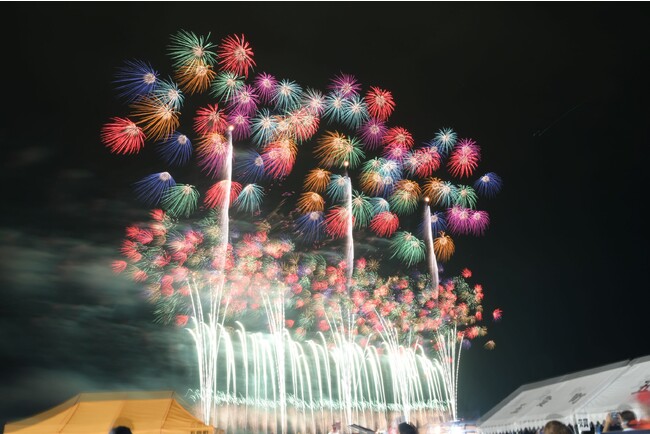 花火打ち上げ前には昨年同様に隣接する会場で「ごかマルシェ」も開催され、キッチンカーや販売ブースが並ぶほか、ステージではライブやダンスパフォーマンスが披露されます。