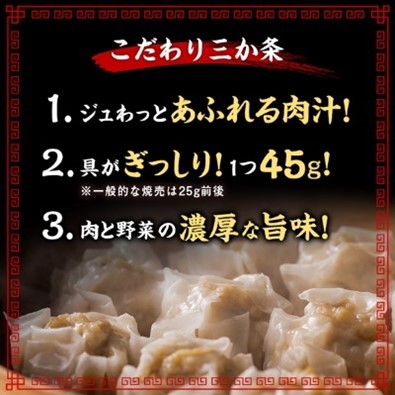 専門店の味を再現した、肉汁あふれるジャンボサイズの本格焼売です。