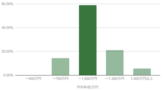 86%が年収700万円以上、1,000万円以上は27%