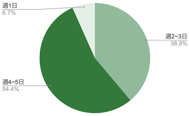 フリーランス・副業のiOS/Androidエンジニア案件の稼働日数は、週4~5日が54.4%と一番多い結果となりました。