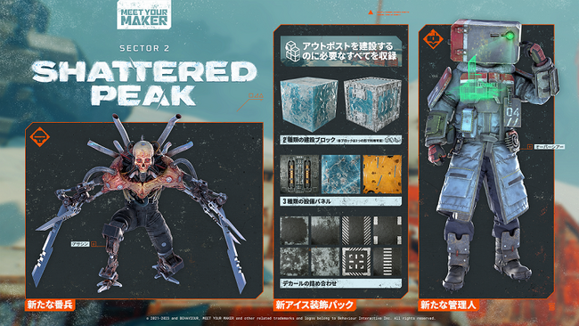 マルチプレイヤーホラーゲーム『Dead by Daylight(デッド・バイ・デイライト)』でお馴染みのBehaviour Interactiveが展開する、一人称視点のビルド&レイドゲーム『Meet Your Maker(ミート・ユア・メーカー)』はこの度、新章「Sector 2: Shattered Peak(セクター2:シャッタード・ピーク)」を2023年9月27日(水)にリリースいたします。