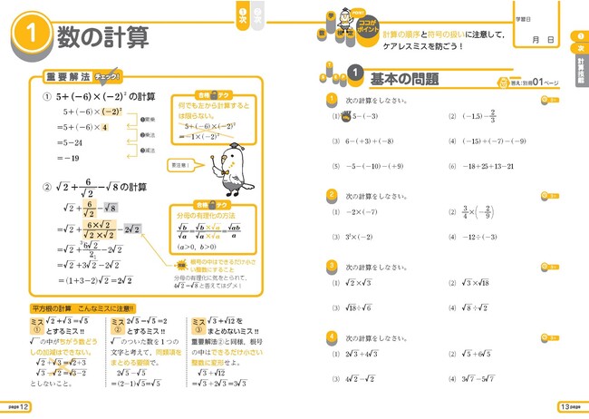 お客様からの要望にこたえ、リニューアル版ではすべての問題に解説をつけました。特に間違えやすい問題は、「ミス注意」コーナーでよりくわしく解説しています。問題を解きっぱなしにすることなく、正しい解き方や必要な知識をきちんと確認することができます。